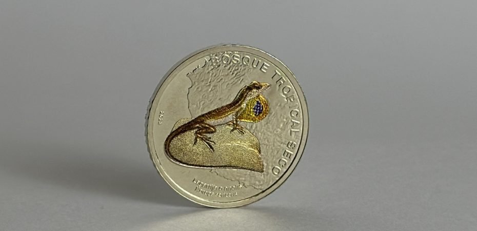 A partir del 26 de agosto se pondrá en circulación la moneda con el reverso de la lagartija o anolis, para su uso como medio de pago, con un valor nominal de ₡50. Esta pieza se distingue por no incorporar elementos de color en su diseño.