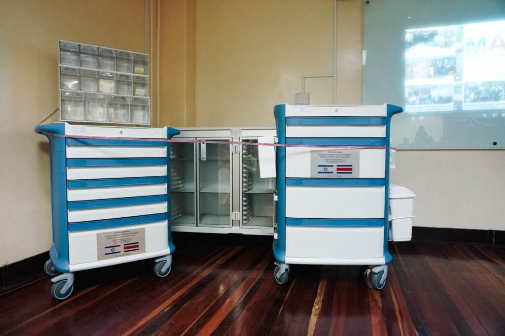 El Hospital Nacional de Niños recibió una valiosa donación de parte de la Embajada del Estado de Israel en Costa Rica: tres carros multiuso para insumos médicos, que serán destinados al Servicio de Emergencias Quirúrgicas – Unidad de Trauma y a la Unidad de Cuidados Intensivos Neonatal (UCIN).