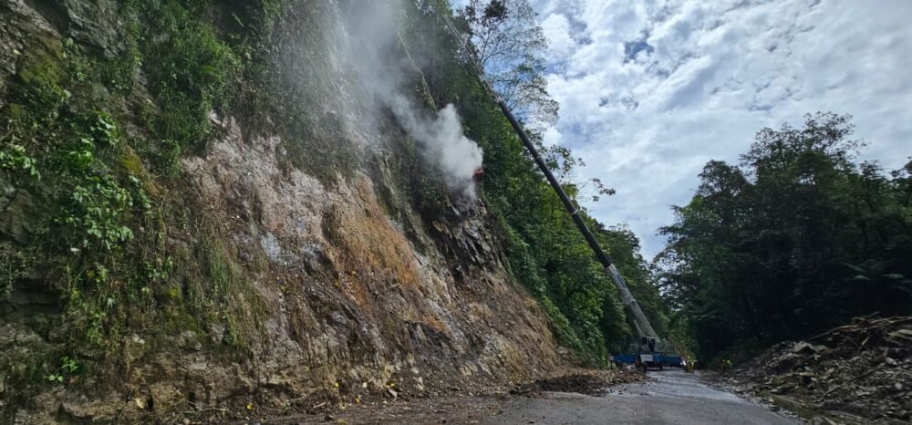 Durante los últimos días, las lluvias han dificultado el avance de los trabajos, por lo que las autoridades analizan la posibilidad de utilizar explosivos controlados para desprender parte del material rocoso y, posteriormente, limpiar la carretera.